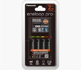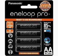 Premium Battery Set: Includes 4 ENELOOP PRO AA rechargeable Ni-MH batteries with a smart charger.