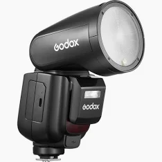 The Godox V1Pro is a premium round-headed TTL speedlight designed to deliver softer, more even lighting with a natural fall-off. It combines TTL automation, manual control, and a high-capacity Li-ion battery with built-in 2.4 GHz wireless (X-system) capabilities. Variants are available for Canon (C), Nikon (N), and Sony (S) camera systems.